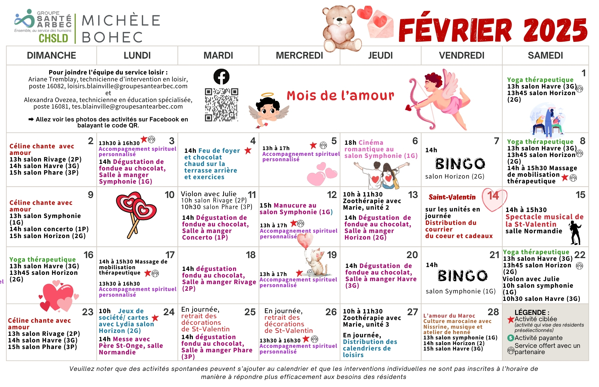 Activités de loisirs du mois de février 2025 pour les résidents du CHSLD Michèle-Bohec